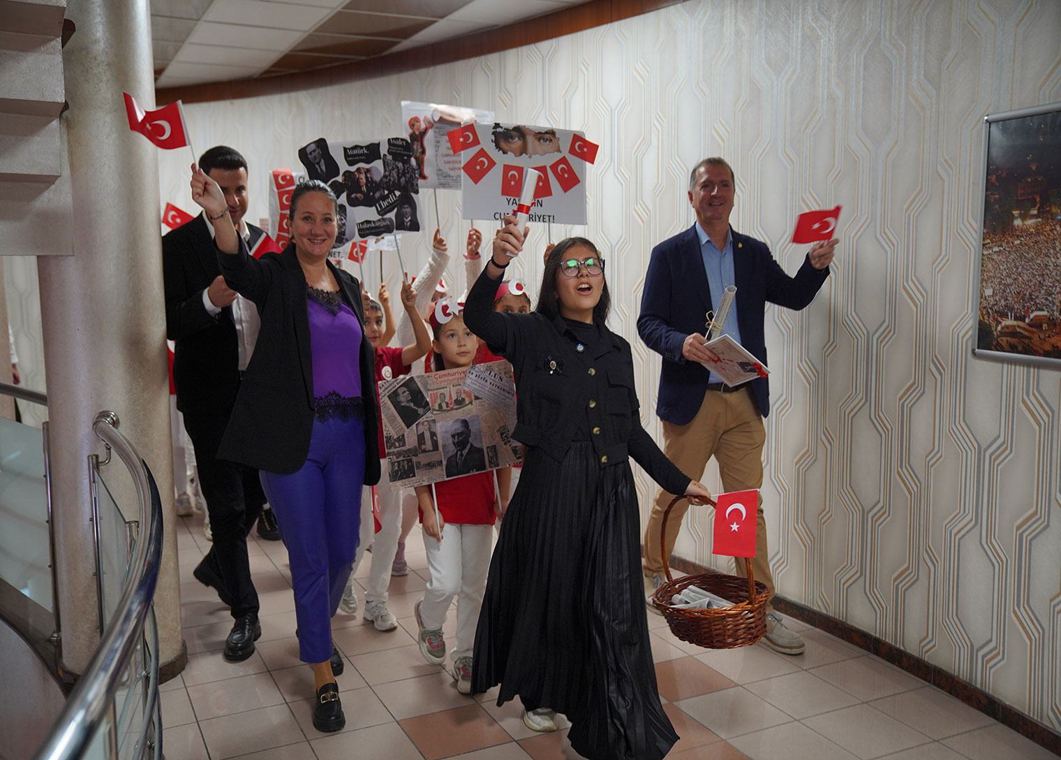 29 Ekim Cumhuriyet Bayramı’na sayılı günler kala, Cumhuriyetin 102. yılı coşkusu Tuzla Belediyesi’nde başladı. Tuzla Belediyesi Akademi Çocuk öğrencileri, ellerindeki “Cumhuriyet ilan edildi” pankartlarıyla belediye binasını ziyaret ederek, tüm müdürlüklerde bayram sevincini paylaştı.