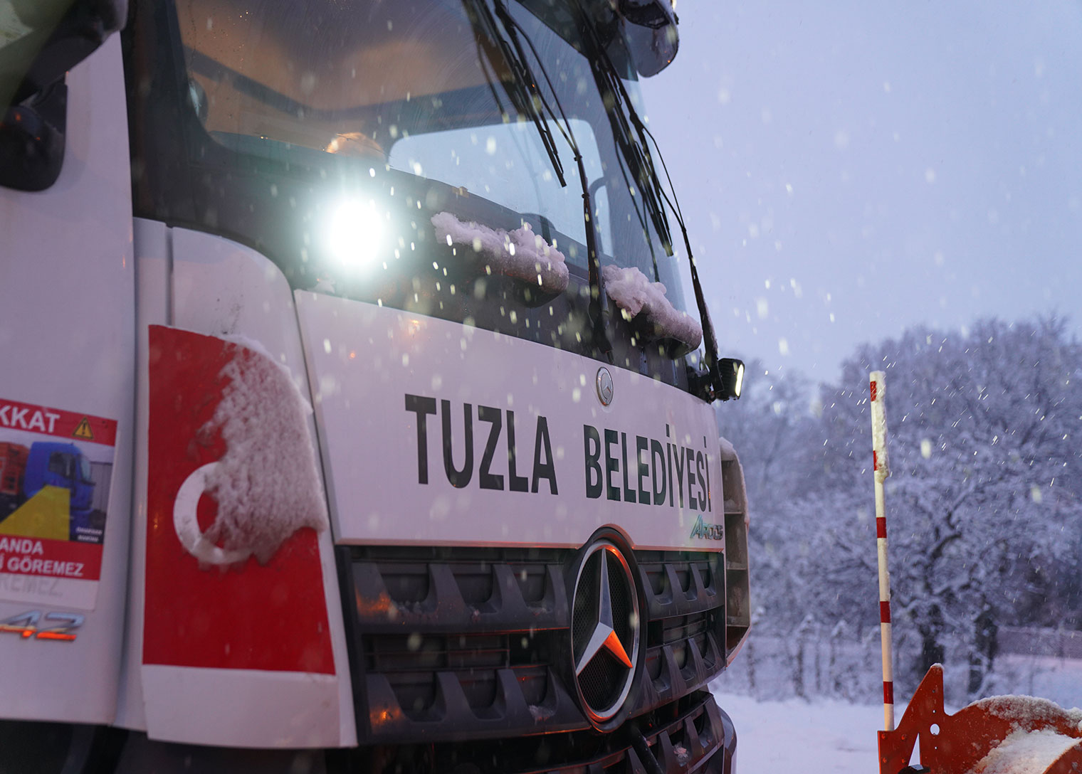 Tuzla Belediyesi, karla mücadele için toplamda 5 kamyonet, 10 transit araç, 5 kar küreme aracı, 4 JCB, 4 beko-loder, 2 ekskavatör, 2 greyder, 15 el ekibi, 129 personel ve 1.250 ton tuz ile sahada. Ekipler, ilçenin farklı noktalarındaki yoğun kar birikintilerine anında müdahale ediyor.