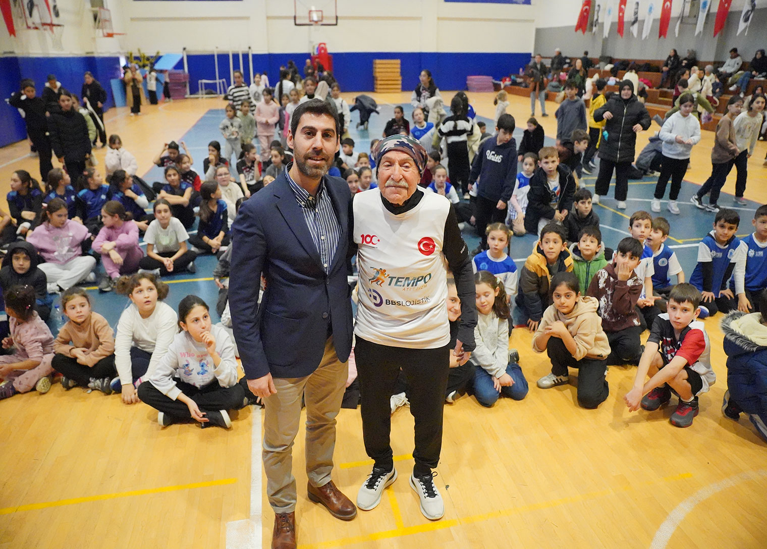 Etkinlikte sürpriz bir konuk da yer aldı. 80 yaşında olmasına rağmen maraton ve yarı maraton koşularına katılan Ahmet Poyraz, çocuklarla bir araya gelerek sporun her yaşta mümkün olduğuna dikkat çekti. Ahmet Poyraz konuşmasında, “Bu çocukları böyle görünce gençliğime gittim. Bizim zamanımızda ne top vardı ne saha. Mahalle aralarında kağıtlardan top yapıp oynardık. Şimdi çocukların bu imkanlara sahip olması çok güzel. Belediyemize spora verdiği önem için teşekkür ediyorum” ifadelerini kullandı.