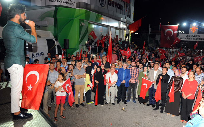 Hayasızca akına gövdesini siper ederek darbe girişimini püskürten vatandaşlar, demokrasi nöbetlerinde toplumun her kesimiyle bir ve beraber olmayı sürdürüyor. Darbe girişiminin yaşandığı akşamdan itibaren kesintisiz olarak nöbeti sürdüren Tuzlalılar, Tuzla Belediye Başkanı Dr. Şadi Yazıcı ve AK Parti Tuzla İlçe Başkanı Sebahattin Demirci’nin öncülüğünde birlikteliğini sürdürüyor. Tuzla’da düzenlenen demokrasi nöbetlerine sanatçılar Murat Kekilli, Emre Ermiş ve Yusuf Güney, Namaz Gönüllüleri Platformu Başkanı, Gazeteci-Yazar Abdullah Yıldız ve mehteran takımı, Tuzlalılar’ı vatan ve millet aşkına buluşturan nöbette bir araya geldi.