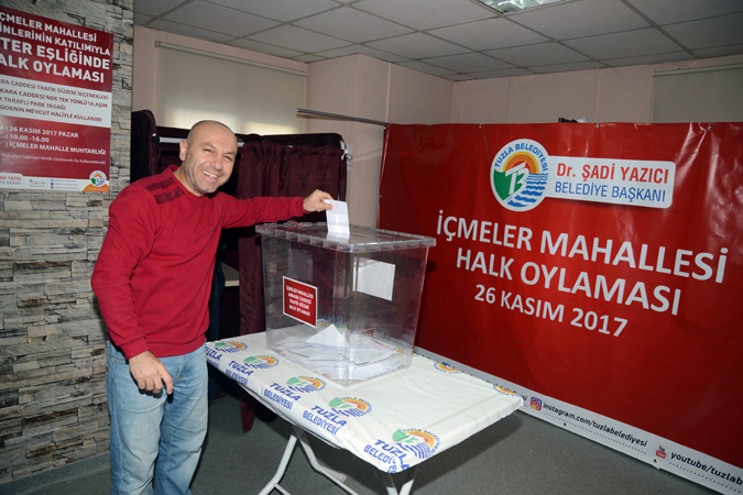 Tuzla Belediye Başkanı Dr. Şadi Yazıcı’nın ortak aklı harekete geçirdiği halk meclisleri ve halk oylamaları devam ediyor. Tuzla Belediye Başkanı Dr. Şadi Yazıcı, Postane ve Cami Mahallesi sakinlerinin katılımıyla düzenlenen İstasyon Caddesi Yayalaştırma Projesi halk oylamasının ardından ilçedeki 2. halk oylamasını 26 Kasım 2017 Pazar günü İçmeler Mahallesi’nde düzenledi. İçmeler Mahallesi sakinleri, muhtarlıkta kurulan sandıkta oy kullanarak Ankara Caddesi’nde tek yönlü ulaşım, tek taraflı park yasağı ve caddenin mevcut haliyle kullanımı seçeneklerini oyladı.