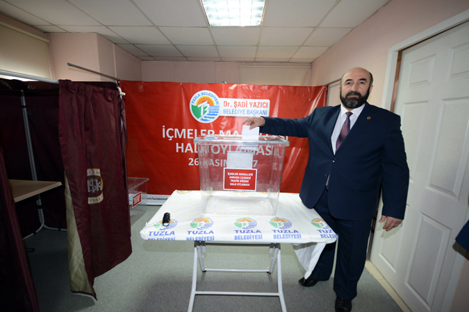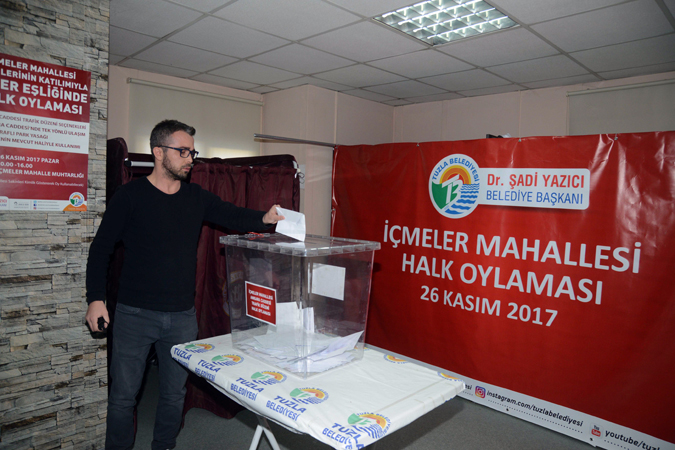Tuzla Belediye Başkanı Dr. Şadi Yazıcı’nın ortak aklı harekete geçirdiği halk meclisleri ve halk oylamaları devam ediyor. Tuzla Belediye Başkanı Dr. Şadi Yazıcı, Postane ve Cami Mahallesi sakinlerinin katılımıyla düzenlenen İstasyon Caddesi Yayalaştırma Projesi halk oylamasının ardından ilçedeki 2. halk oylamasını 26 Kasım 2017 Pazar günü İçmeler Mahallesi’nde düzenledi. İçmeler Mahallesi sakinleri, muhtarlıkta kurulan sandıkta oy kullanarak Ankara Caddesi’nde tek yönlü ulaşım, tek taraflı park yasağı ve caddenin mevcut haliyle kullanımı seçeneklerini oyladı.