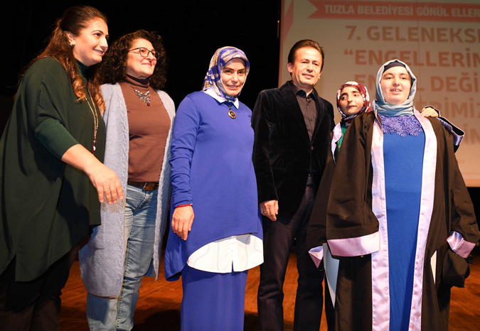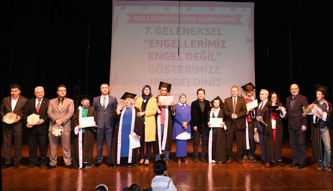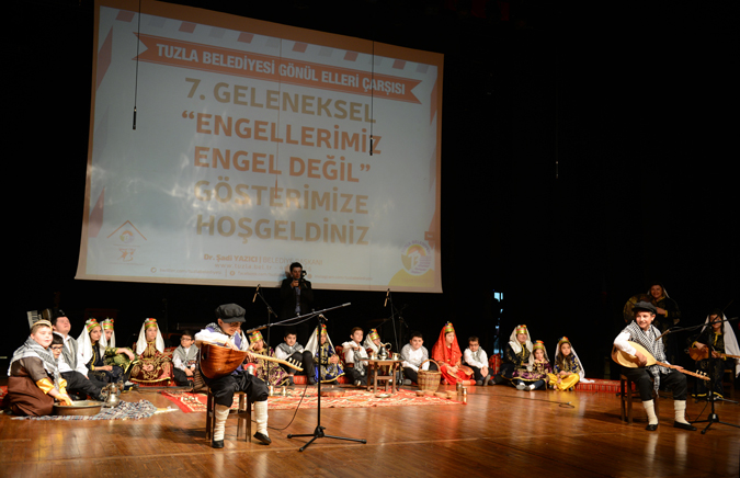 İdris Güllüce Kültür Merkezi’nde düzenlenen 7. Geleneksel Engellerimiz Engel Değil gösterisine Tuzla Kaymakamı Ali Rıza Çalışır, Tuzla Belediye Başkanı Dr. Şadi Yazıcı ve eşi Dr. Fatma Yazıcı, İlçe Milli Eğitim Şube Müdürü Hacı Osman Yırtıcı, AK Parti Tuzla İlçe Kadın Kolları Başkanı Derya Bacacı, Tuzla Belediyesi Gönül Elleri Çarşısı Yönetim Kurulu, Kadın Kent Gönüllüleri, katılımcı okullara bağlı özel çocuklar ve aileleri katıldı. Konuklar, Vala Gedik Özel Eğitim Mesleki Eğitim Merkezi Okulu özel çocukların bando takımının gösterisi ve Tuzla Belediyesi Gönül Elleri Çarşısı Özel Çocuklar Komisyonu tarafından yapılan resim sergisiyle karşılandı.