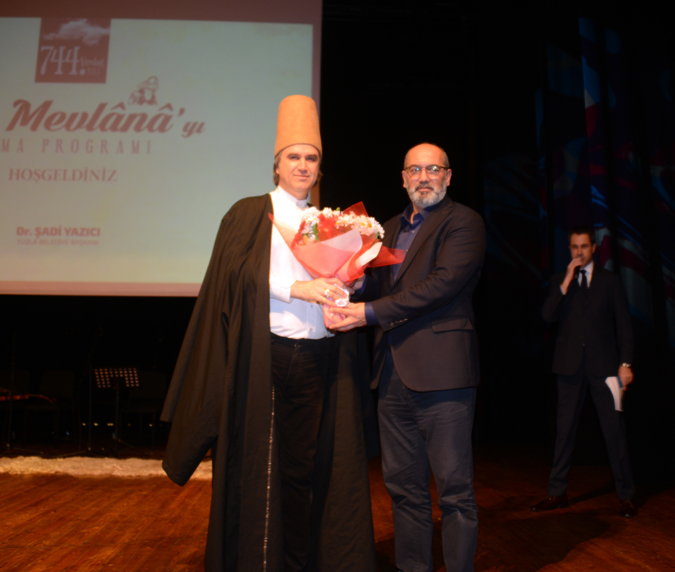 Tuzla Belediyesi Başkan Yardımcısı Dr. Turgut Özcan, programda yaptığı konuşmada Hz. Mevlana’nın hayatı ve ölümünü vuslat olarak yorumlamasına dikkat çekti. Özcan, “Vuslat, kavuşma demek. Ölüm hakkında çok derin araştırmalar yapılmıştır ama ölümü herhalde en güzel tarif eden Mevlana olsa gerek. Hz.Mevlana’nın hayatını okumak, anlamak ve sonra ziyaret etmek lazım. Bu zatların ülkemizde yaşaması bizim için büyük bir şans. Bu gece inşallah herkese hayırlara vesile olsun, gönüllere ferahlık olsun. Tüm emeği geçenlere teşekkür ederim” dedi. Tuzla Belediyesi Başkan Yardımcısı Dr. Turgut Özcan, Kültür ve Turizm Bakanlığı Güzel Sanatlar Genel Müdürlüğü Tarihi Türk Müziği Topluluğu Sanat Yönetmen Yardımcısı Bahri Güngördü’ye gecenin anısına çiçek takdim etti.