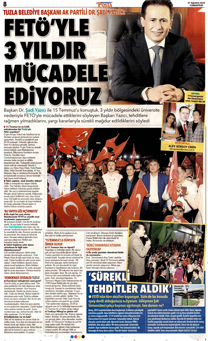 POSTA - FETÖ'yle 3 Yıldır Mücadele Ediyoruz